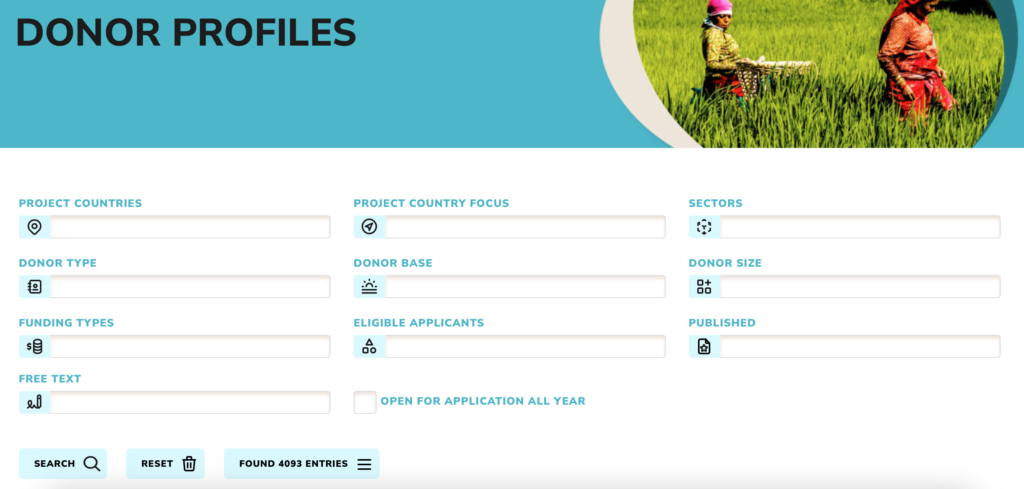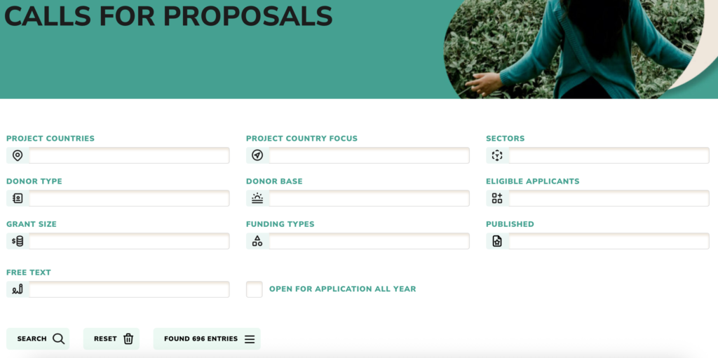 The grants database features 800+ open calls for proposals from over 4,000 donors. They either have a specific deadline (i.e. from EU) for application or are open all year (i.e. from many foundations). New grants are entered on a daily basis.