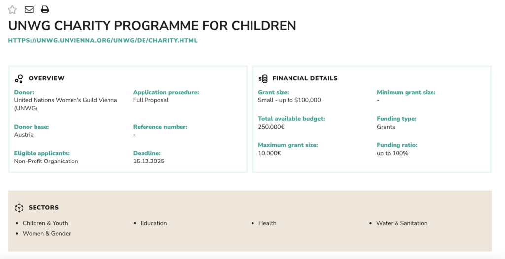 • Direct link to donor and grant opportunity